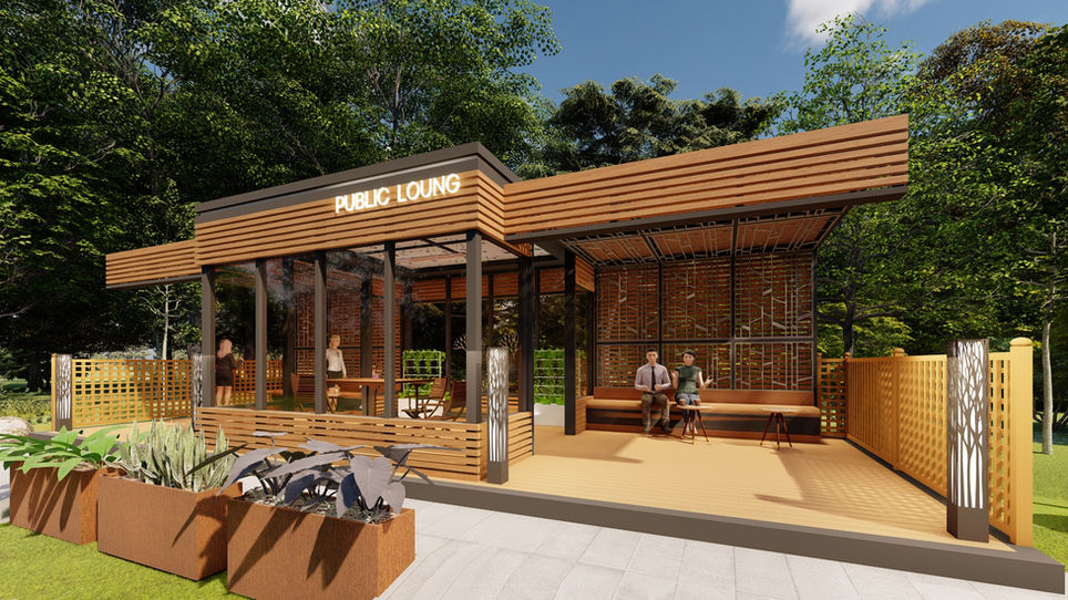 목재루버 외장마감으로 자연미를 한층 높인 퍼블릭 라운지